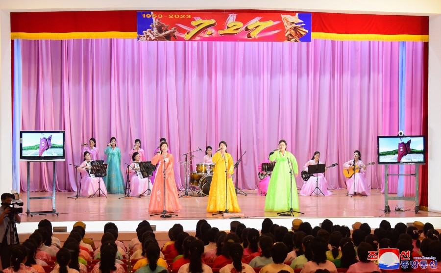 O grupo central de propaganda artística da USMC interpretou na ocasião os coros “Viva o Generalíssimo Kim Il Sung!” e “Canção do Exército Popular da Coreia”.